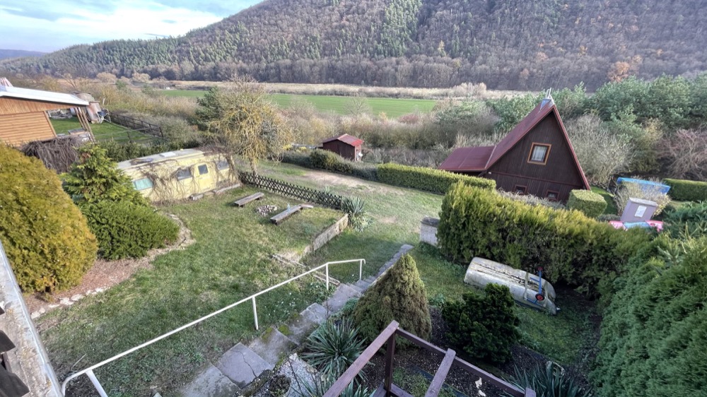 Na zahrádce je připraven další příbytek v podobě zapomenutého, ale funkčního hippie karavanu, perfektní a stylové ubikace pro návštěvy nebo pro vaše ratolesti na hraní. Zahrada disponuje parkovou úpravou se vzrostlými okrasnými stromy a vybudovanou kaskádou, která je připravena pro vaše pěstitelské choutky. Samozřejmostí je spodní terasa s posezením nabízející panoramatický výhled směrem k údolí. Pro kutily jsme připravili menší dílničku, která také slouží jako sklad na sekačku, kola nebo dříví na zátop.